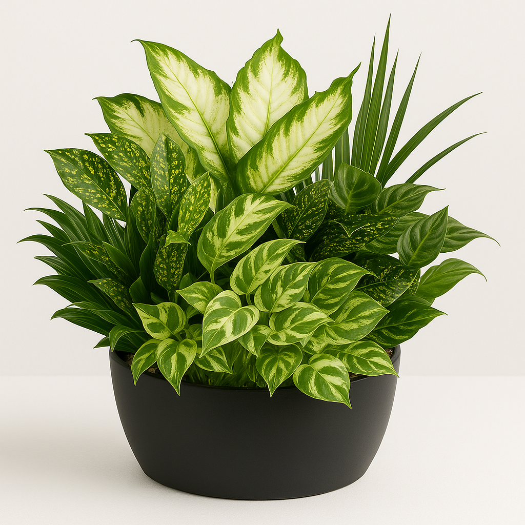 Bring a touch of serenity to any space with this lush, low-maintenance arrangement. Designed to thrive in indoor environments, it effortlessly enhances desks, countertops, or reception areas with vibrant greenery and modern style. Perfect for home offices, workspaces, or gifting.